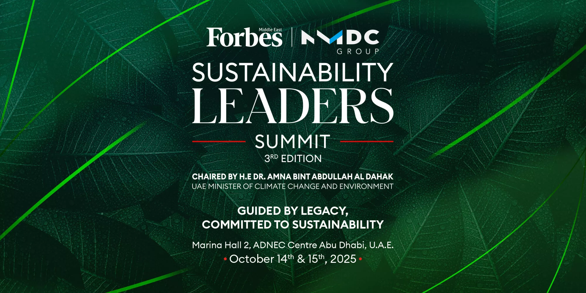 The third edition of the Forbes Middle East Sustainability Leaders Summit, chaired by H.E. Dr. Amna bint Abdullah Al Dahak, UAE Minister of Climate Change and Environment , and presented by NMDC Group, will take place on the 14th and 15th of October 2025 in Abu Dhabi under the theme “Guided By Legacy, Committed To Sustainability.” This two-day event aims to promote sustainable development and climate resilience while driving economic growth.