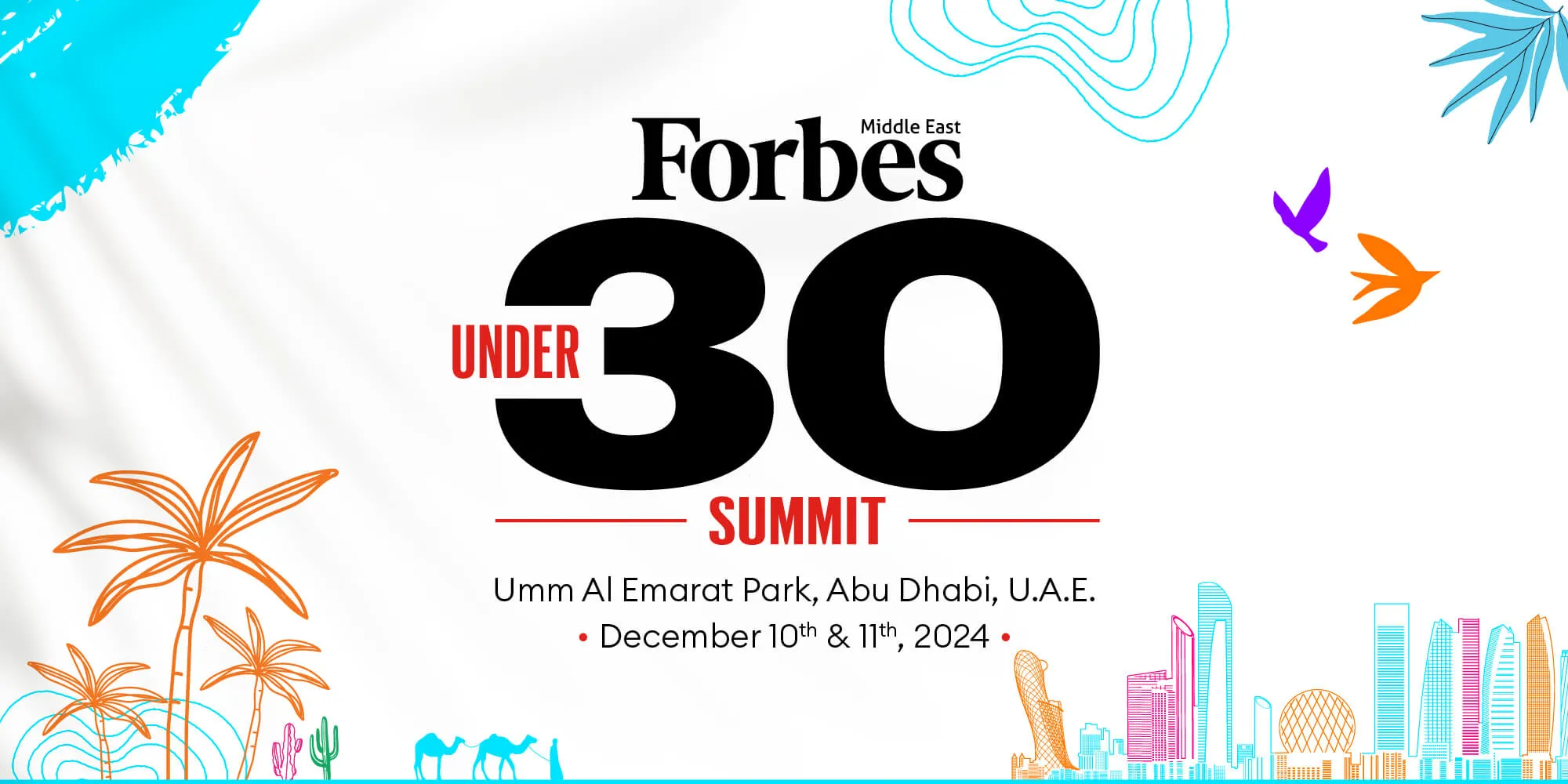Calling all Arab world innovators! Mark your calendars for the inaugural Abu Dhabi edition of the Forbes Middle East Under 30 Summit, held from the 10th to 11th of December at Umm Al Emarat Park, Abu Dhabi.